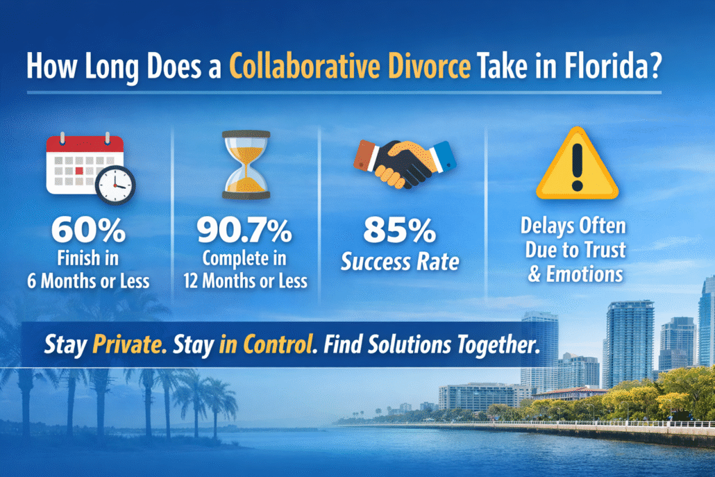 This article explains how long a Collaborative Divorce takes, based on real Florida data. It highlights timelines, causes of delay, and how clients can help move the process efficiently.